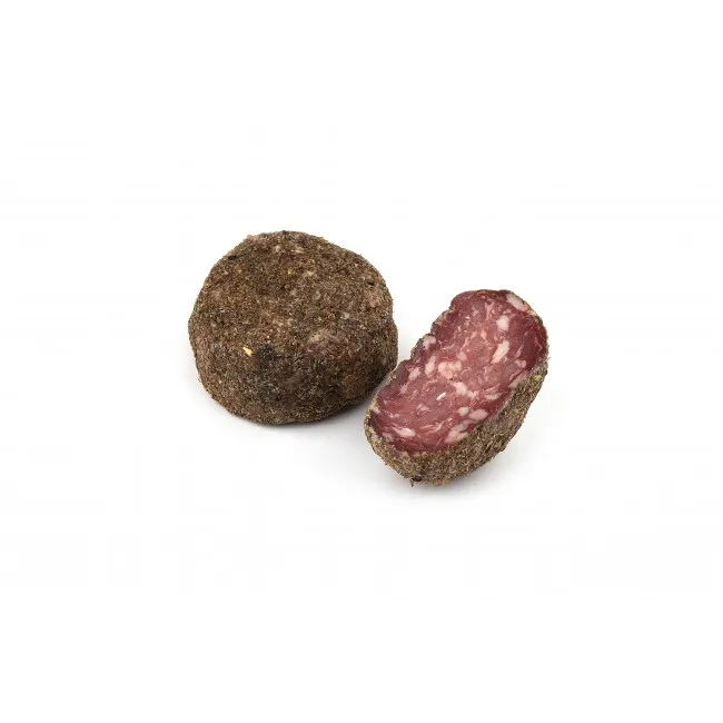 Il Capocollo dolce si ricava da un parte speciale del maiale tra capo e collo, è dunque un pezzo intero accuratamente salato e aromatizzato. Legato a mano con stecche di canne e stagionato a lungo. L’utilizzo di un modesto quantitativo di sale lo rende dolce.