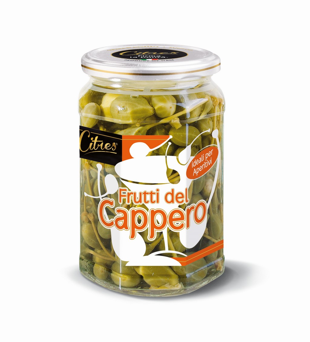 Il Frutto del Cappero è una capsula oblunga e verde, a forma di fuso, portata da un peduncolo di 2-3 cm, fusiforme e carnosa, con polpa di colore rosaceo. Contiene numerosi semi. OTTIMO PER APERITIVI. Disponibile anche nel formato da 290g.