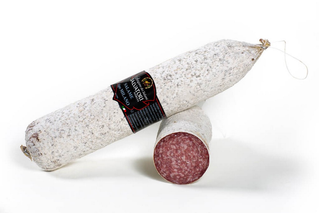 Salume a grana medio grande preparato con carni suine magre, viene aromatizzato con spezie piccanti che rendono questo prodotto una vera specialità artigianale.